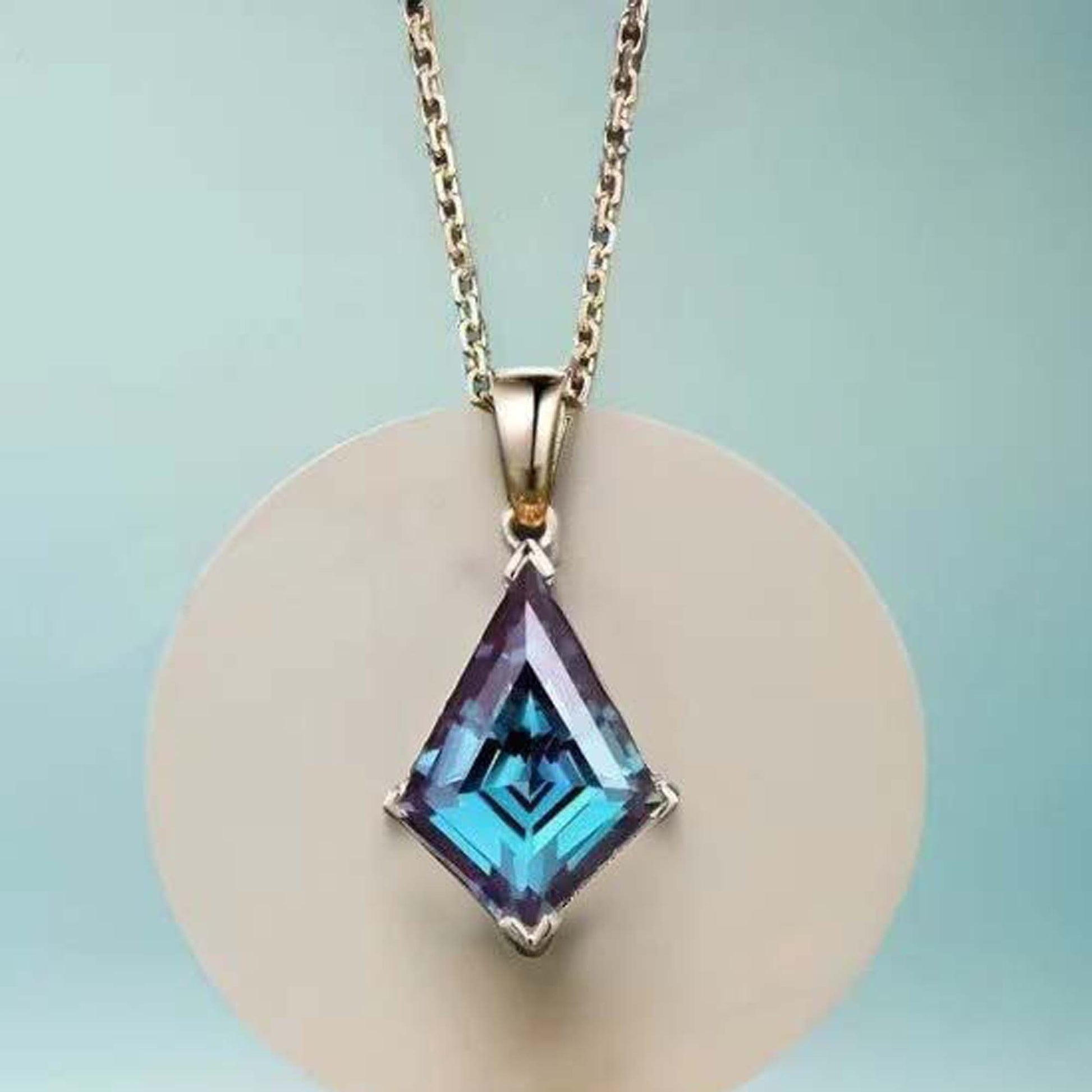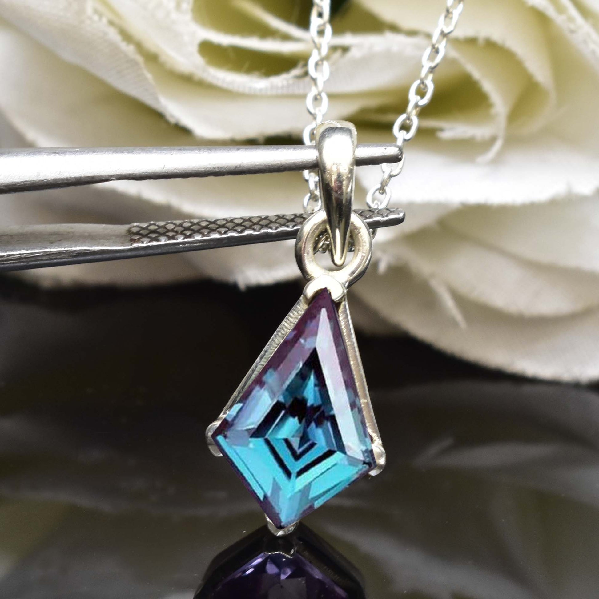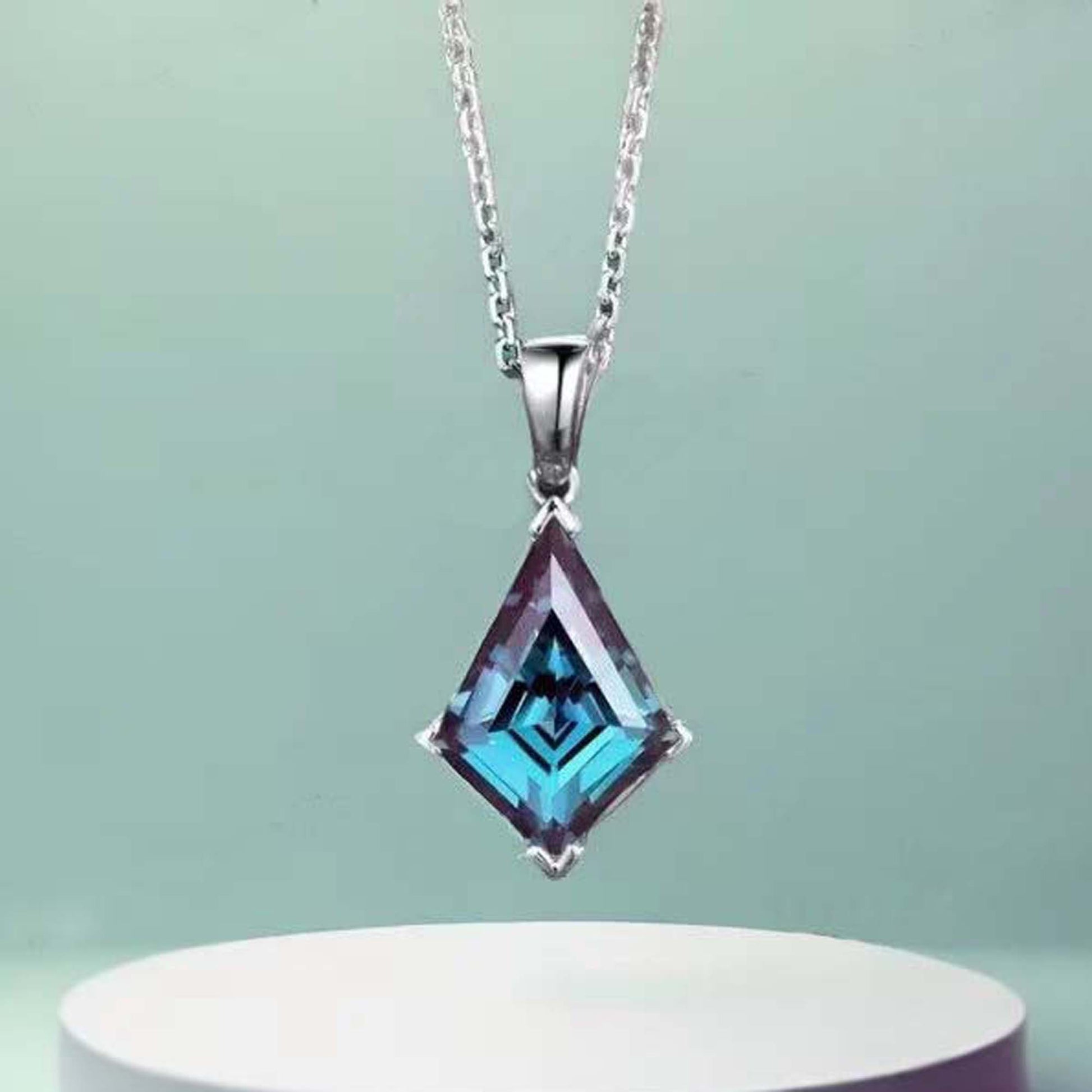 This unique and elegant Alexandrite pendant earring set is perfect for any special occasion. Made with high quality S925 Sterling Silver, these vintage earrings feature a kite-shaped Alexandrite gemstone, known as June's birthstone. The color-changing effect of the gemstone adds a touch of mystique to this handmade designer jewelry set by GEMS VIBES. A perfect gift for any jewelry lover.