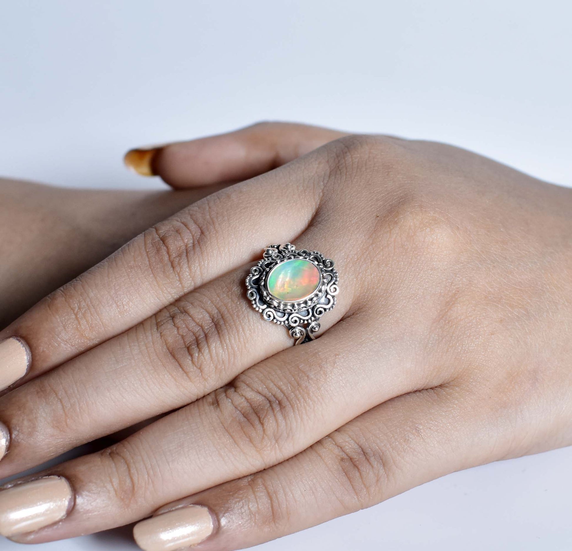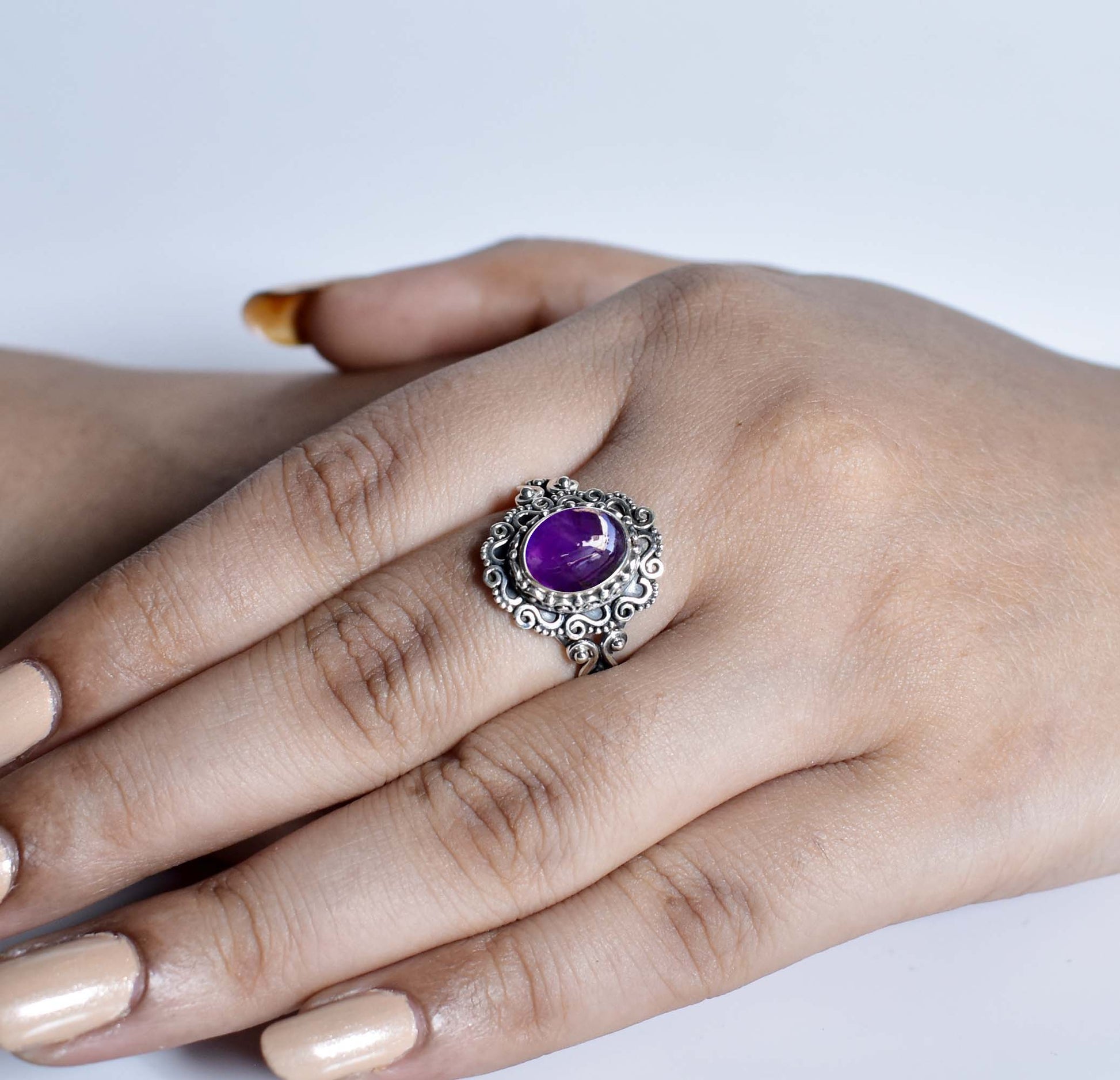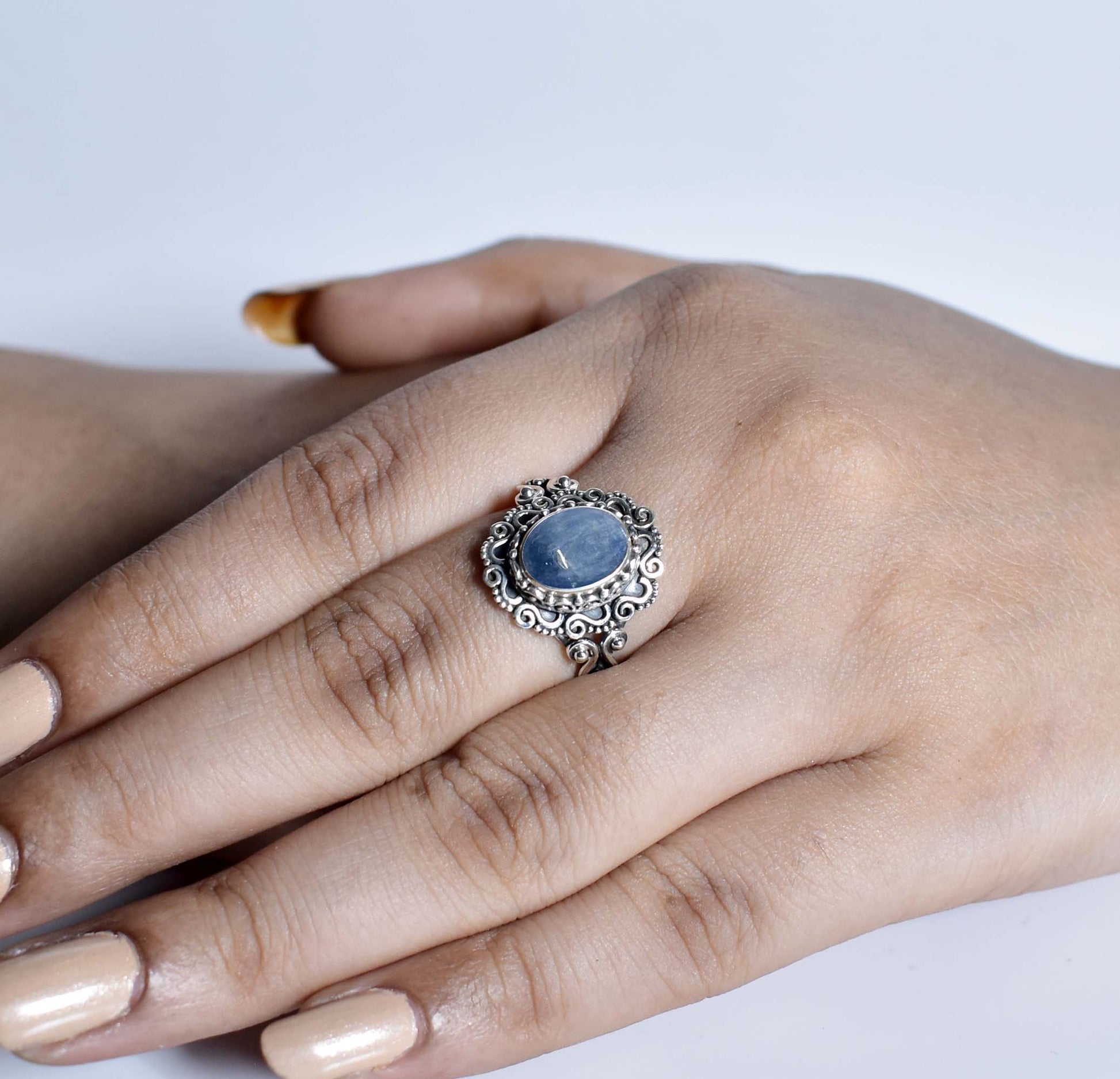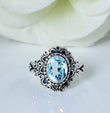 This handcrafted ring showcases an oval-shaped faceted gemstone set in 952 oxidised silver, offering both elegance and durability. Available in multiple gemstone variations, it allows for personalized style choices. The oxidised silver finish enhances the gemstone’s natural brilliance while providing a sophisticated, timeless look. With a light oxidized antique finish, it’s perfect for daily wear or thoughtful gifting.