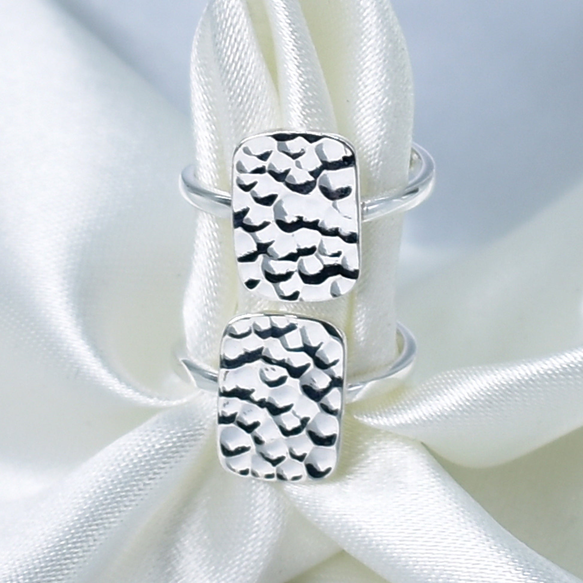 Crafted from authentic 925 sterling silver, this hammered rectangle toe ring offers a distinctive textured finish that enhances its artisanal appeal. Its adjustable design ensures a comfortable, secure fit for various toe sizes, combining elegance with practicality. Ideal for those seeking a subtle yet refined accessory, this piece complements both casual and formal attire effortlessly.