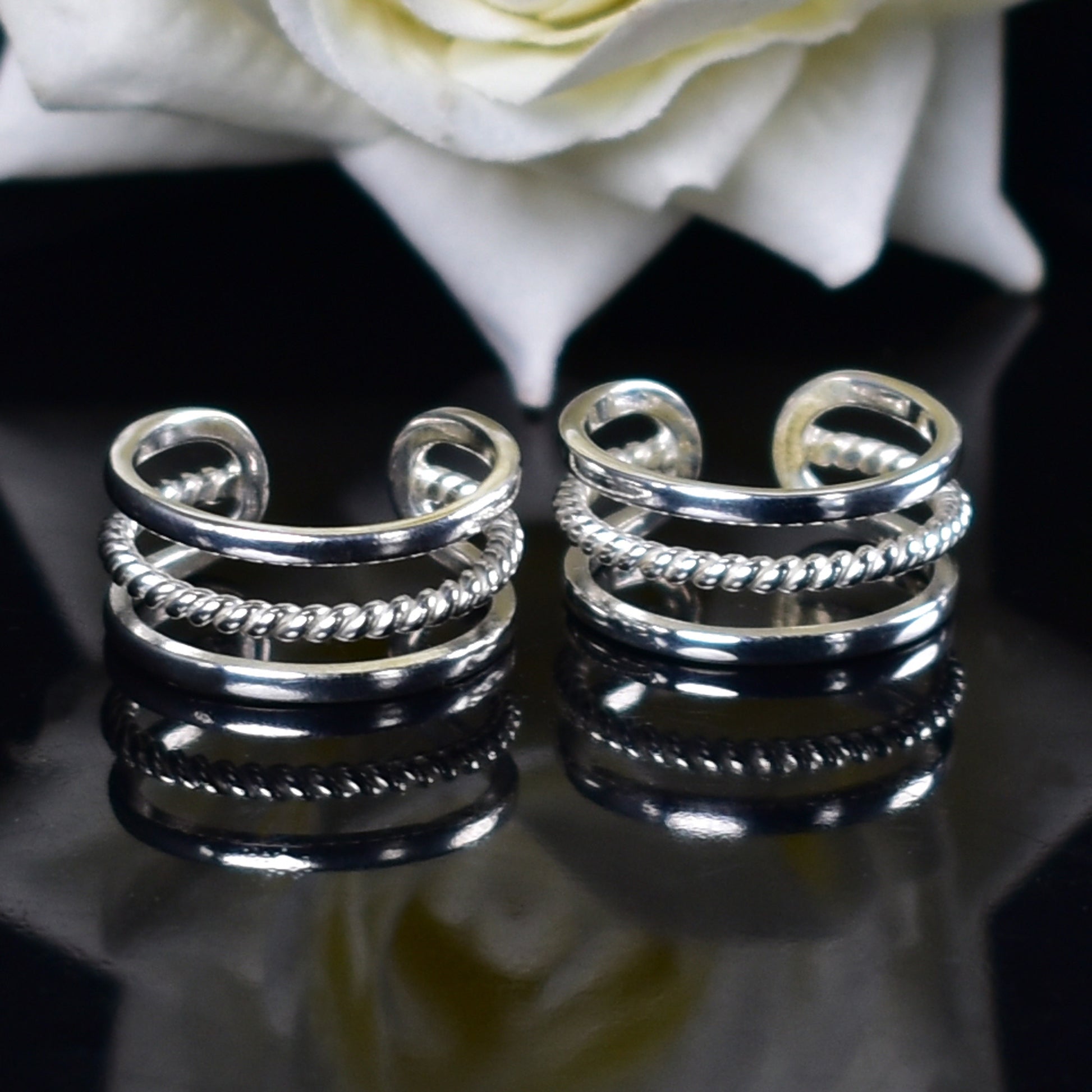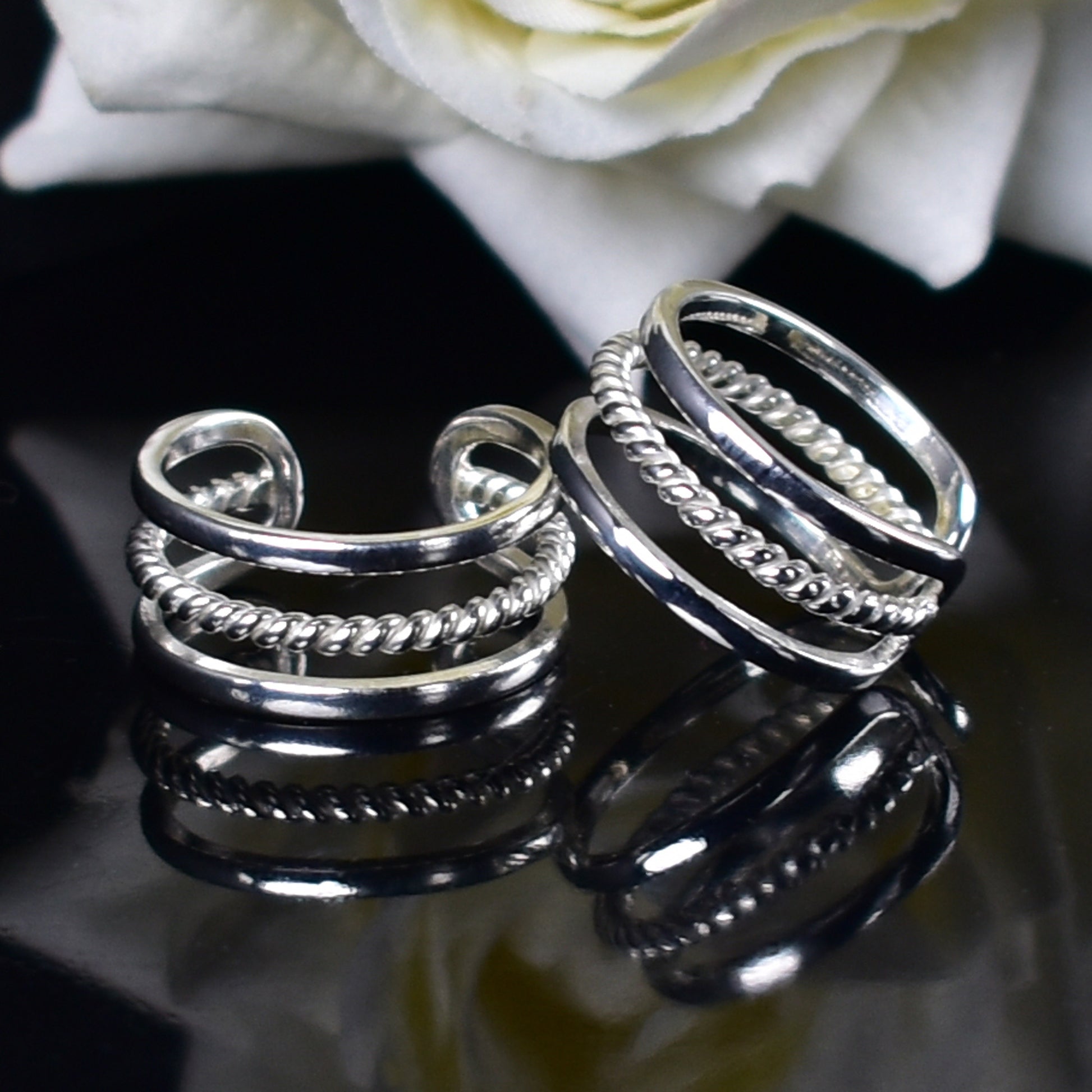Introducing Triple band rope detail toe ring with adjustable style in 925 sterling silver